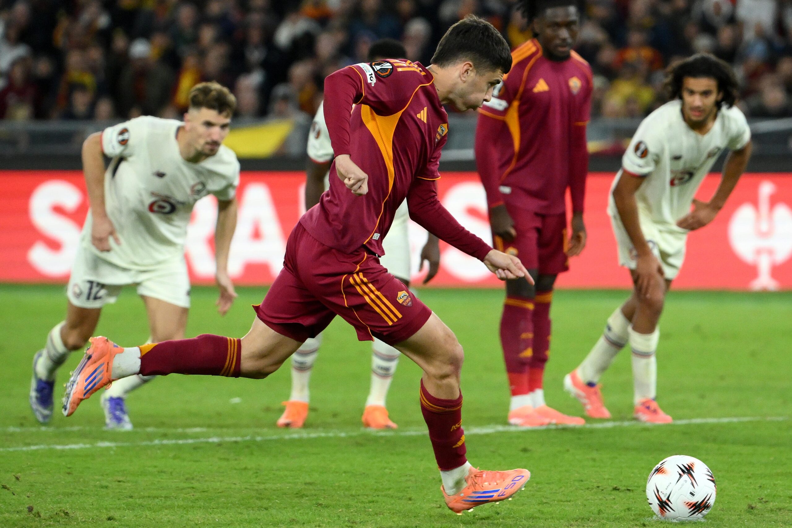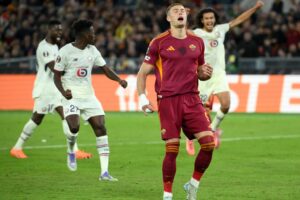 Roma-Lille, minuto 80°: i francesi avanti grazie al gol lampo di Haraldsson, la Roma alla ricerca disperata del pareggio. Sugli sviluppi di un calcio d’angolo battuto da Soulé, Çelik colpisce di testa e il pallone impatta sul braccio di un difensore avversario. L’arbitro inizialmente lascia correre tra le proteste generali, ma dopo il richiamo del VAR concede il rigore. È il momento che sembra poter cambiare la partita e riaccendere l’Olimpico, ma si trasforma in un incubo.